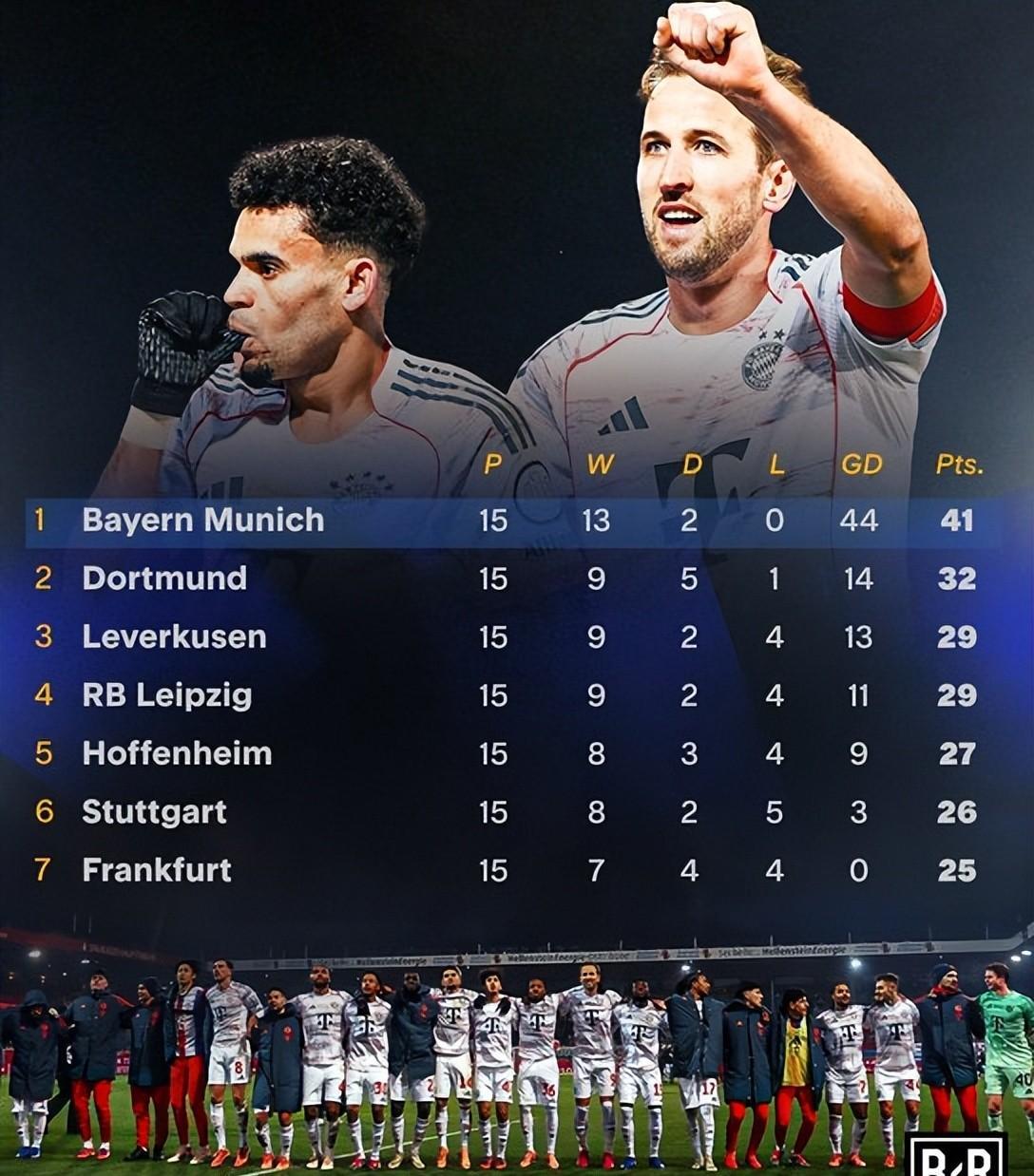 拜仁是否有望成为德甲历史上第二支以不败战绩夺冠的球队?至少从前15轮的发达来看,这一目的仍具实际可能性。