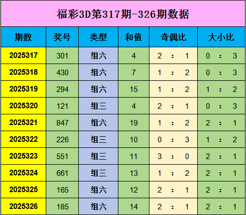 王林福彩3D奖号327期推选: