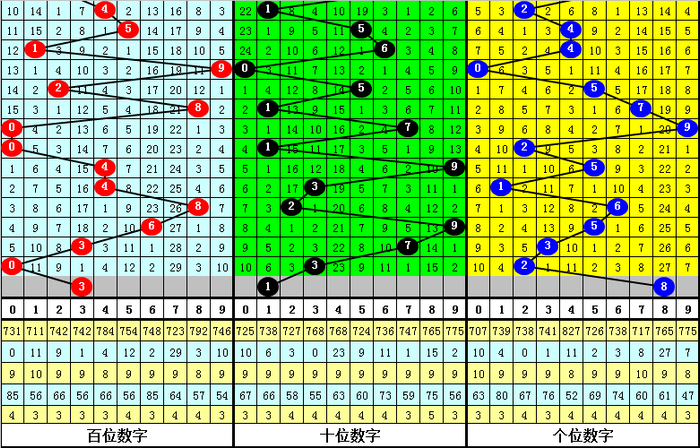 其中,号码0-9开出次数别离为:号码0开出3次、1开出3次、2开出4次、3开出4次、4开出2次、5开出4次、6开出2次、7开出3次、8开出2次、9开出3次。