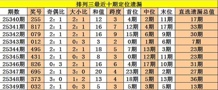 开奖纪念:摆列三第2025349期奖号:032,定位直选遗漏值5期、3期、5期,遗漏总值为13期。