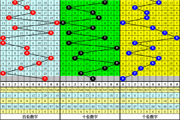 百位:1路号发扬较冷,本期防回补,看好7。