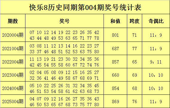 和值分析:历史同时第004期奖号和值出现边界在660-869之间,波动了209个点位,和值均值为788,旧年同时和值开出869,上涨了15个点位,与旧年同时和值比拟,本年第004期看好和值下落,开出在80周围。