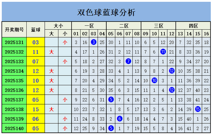 上期蓝球开出二区号码05