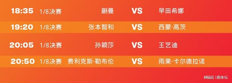此外,中国台北名将林昀儒、法国名将大勒布伦和瑞典名将莫雷加德此前也赢得晋级,八强席位到当今也曾产生6席,剩余2场比赛是张本智和VS西蒙·高茨、雨果VS小勒布伦。