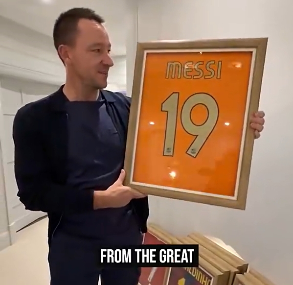 特里在视频中说谈:“这是一件非常卓越的球衣,来自惟一无二的伟大球员梅西在斯坦福桥球场比赛时所穿。