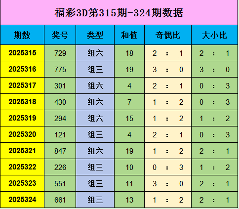 福彩3D上期开出奖号为661,奖号为组三面貌,和值为13,奇偶比为1 : 2,大小比为2 : 1。