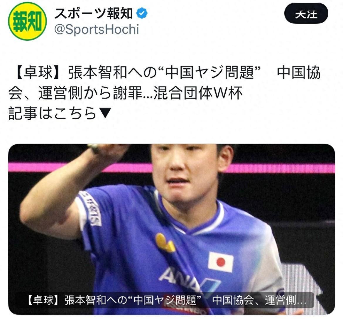 由于成皆混团天下杯张本智和被念错名字事件,近期,针对日本乒协就此事件的抗议,赛事组委会和中国乒乓球协会接收了一系列应答措施,凭据日本乒乓球协会副会长星野一郎的讲明,事发后大会立即向张本智和偏激妹妹张本好意思和默示歉意