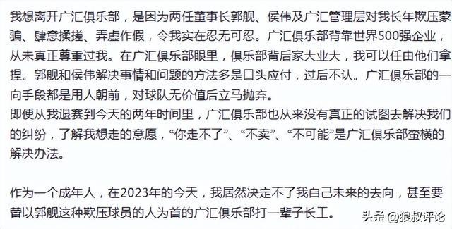 周琦在个东谈主社媒作念出更多的爆料,与新疆广汇俱乐部也曾达到无法合营的地步,尤其是一些高层的矛盾公开化。