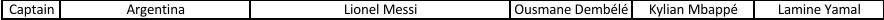 梅西的聘请是登贝莱、姆巴佩和亚马尔。