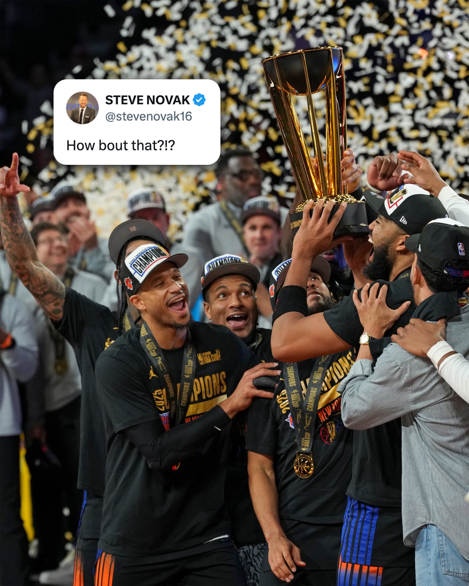 当天,尼克斯社媒晒出球队庆祝夺冠的现场组图,并配文:
