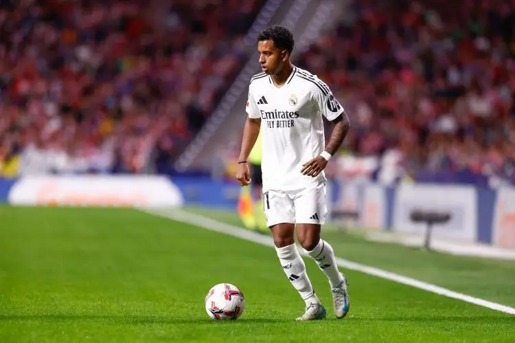 此役,罗德里戈迎来近4场比赛的第3次首发,与姆巴佩、维尼修斯构成了皇马的锋线三叉戟。开场之后,两边在场上张开对攻,皆创造了不少得分契机。第39分钟,皇马获取前场右侧即兴球,罗德里戈送出落点极佳的传球,贝林厄姆头球破门首开记录。3分钟后,罗德里戈突入禁区倒地,但被判假摔并吃到黄牌。