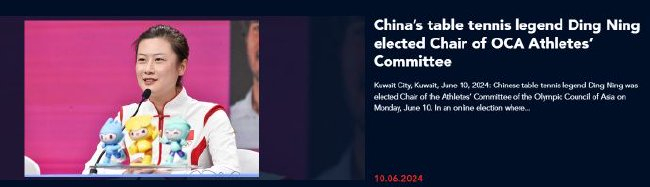 北京时辰6月10日,据亚奥理事会官网音书,中国乒乓球大满贯得主丁宁当选亚奥理事会清醒员委员会主席。