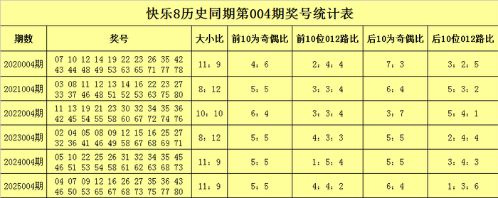 从上表不错看出,在第004期历史同时开奖中,前10为号码奇偶比为30:30,奇偶号码出现频次特殊,前年同时前10位奇偶号码走势均衡,差别开出了5个,本年同时展望前10位偶数号码转热,关爱号码02、06、08、11、12、13、17、24、28、31。